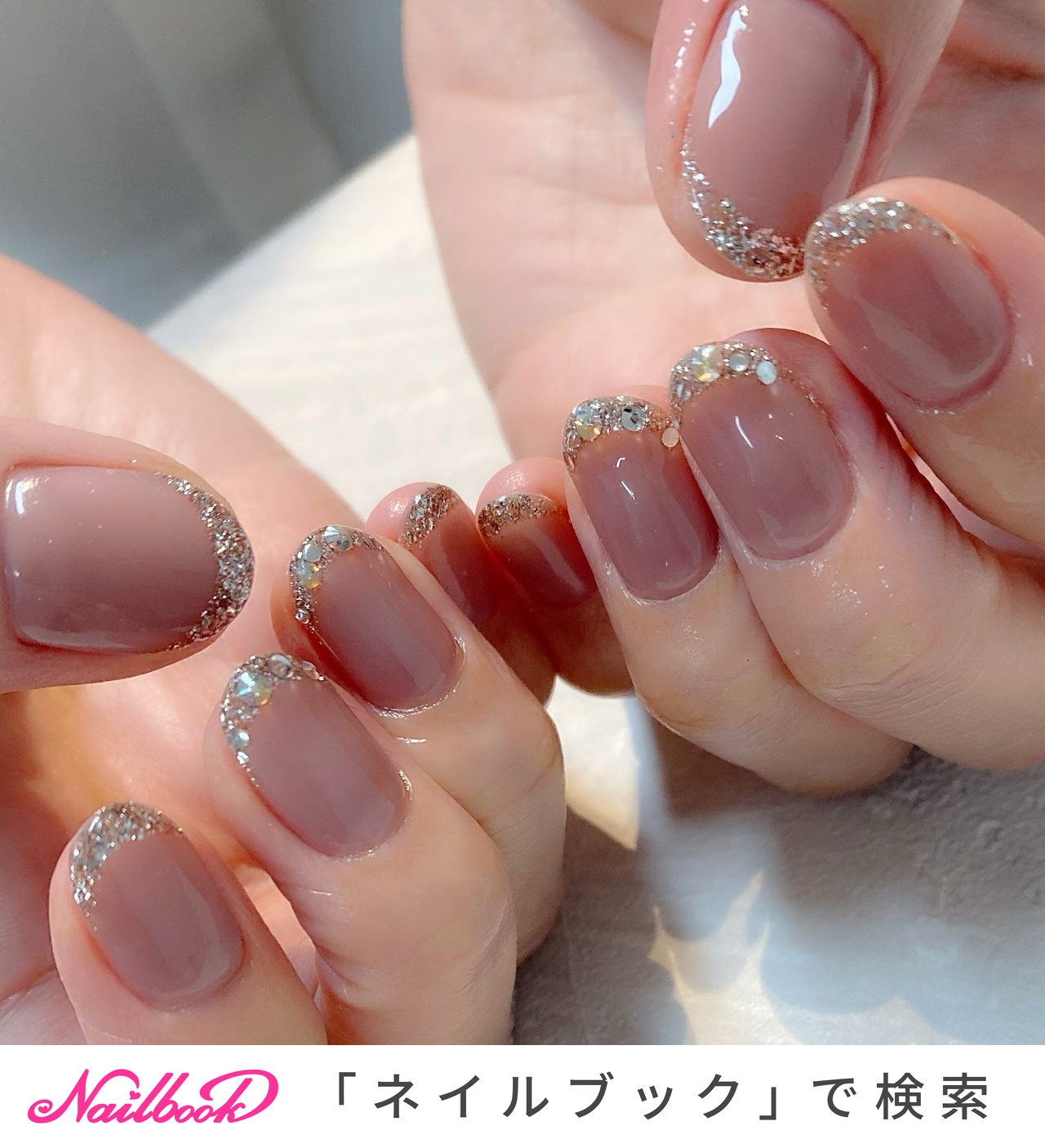 ピンクベージュ ピンクゴールドのキラキラ逆フレンチnail 青山骨董通りのネイルサロン Nails Ayのブログ